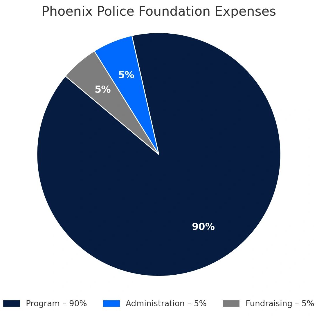 Importantly, when considering where to give, know that the Phoenix Police Foundation strives to keep our internal costs low. In 2024, we distributed 90% of functional expenses to our programs. Meaning 90% of every dollar went to Funding, Honoring, and Assisting the Phoenix Police Department and officers.